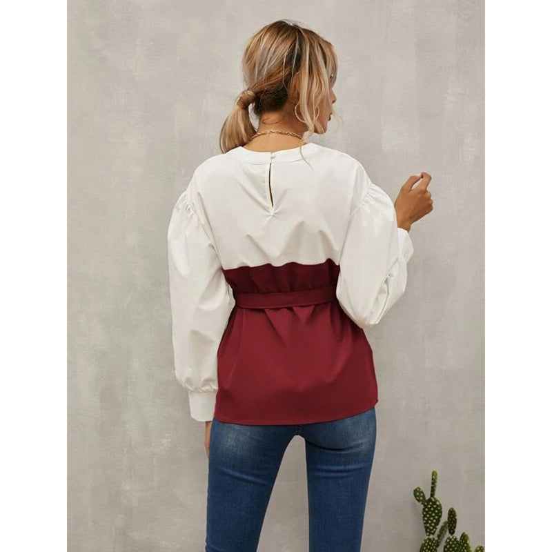 A long women's shirt that's both flattering and chic. Long sleeve shirt with cinched cuff details. Tie front around the waist creates a tailored shape. Drapes long to the hip for added coverage. Perfect with faux leather leggings and a basic pump.